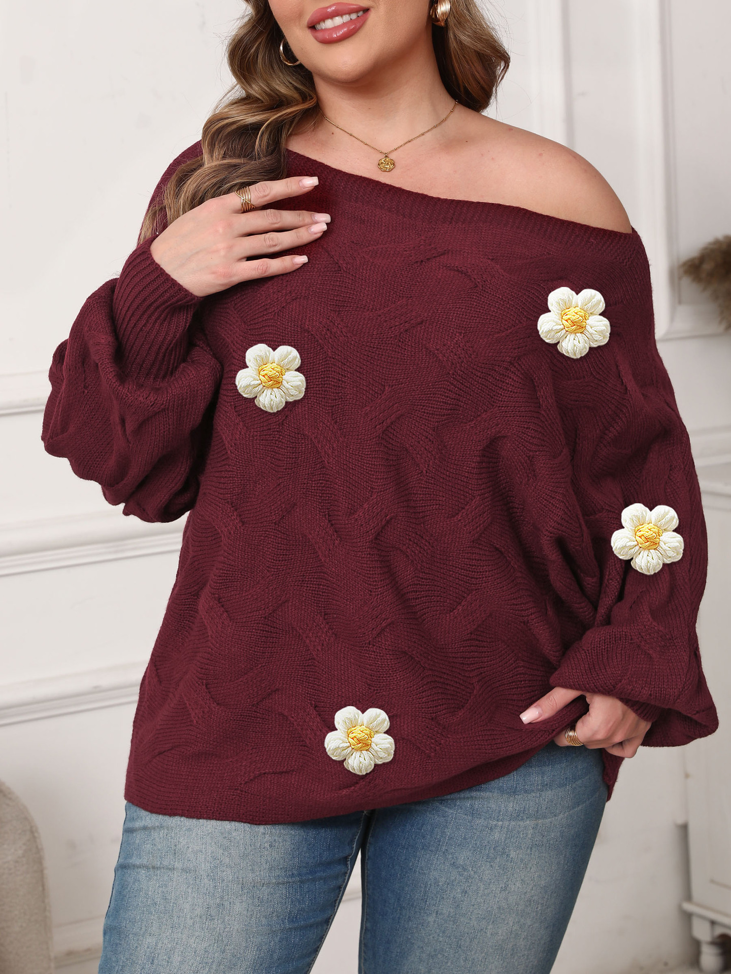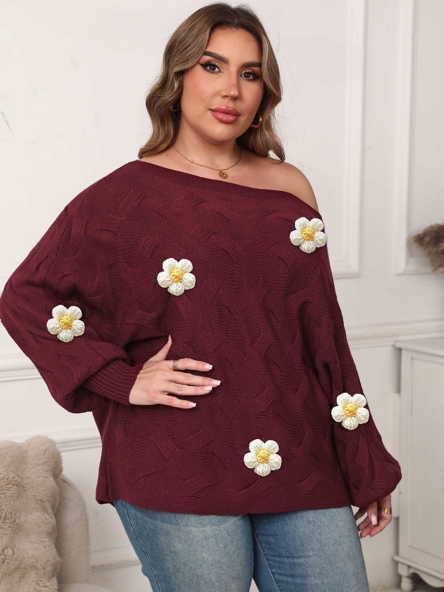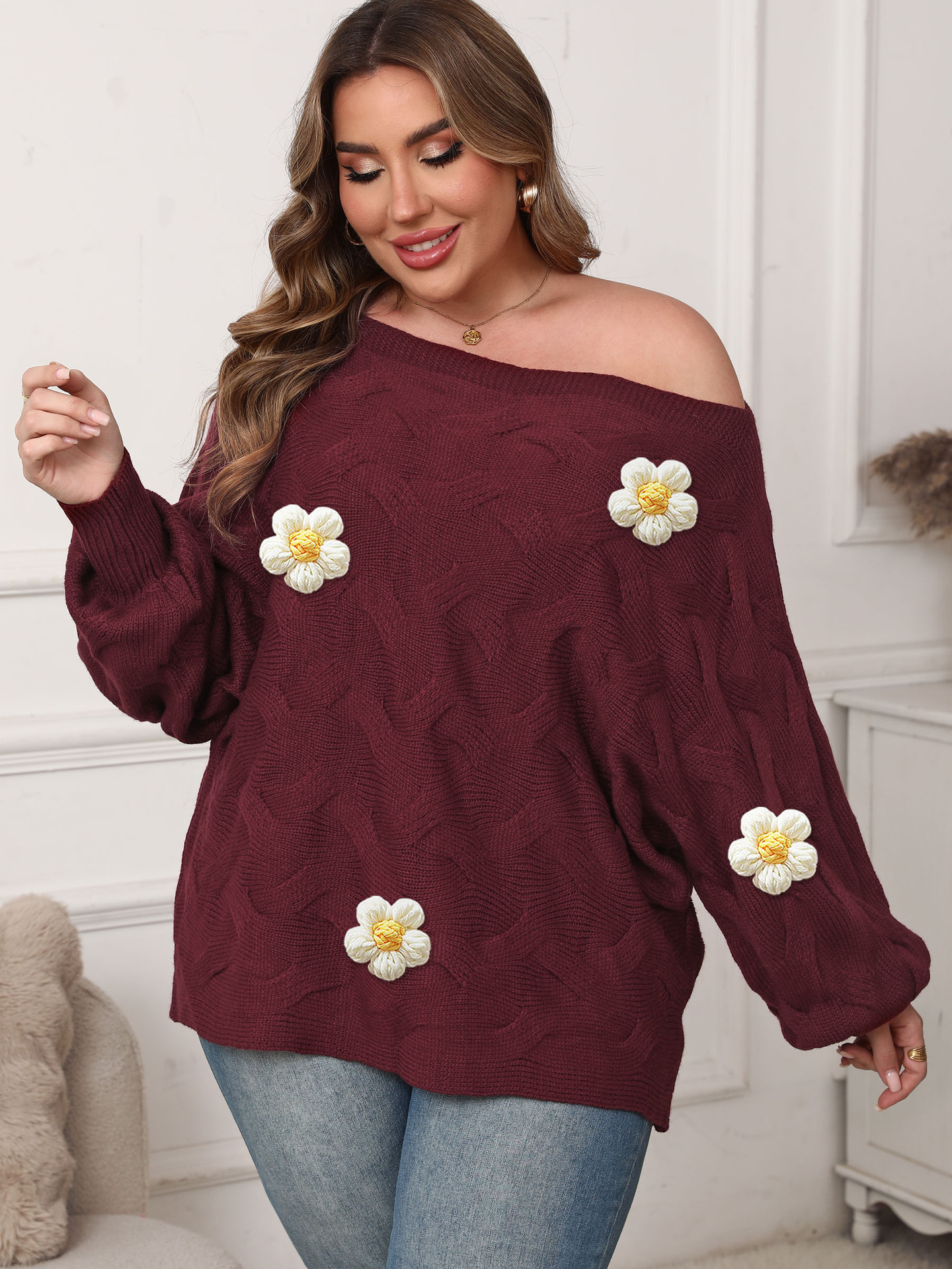Color: wine red (5 big white flowers)