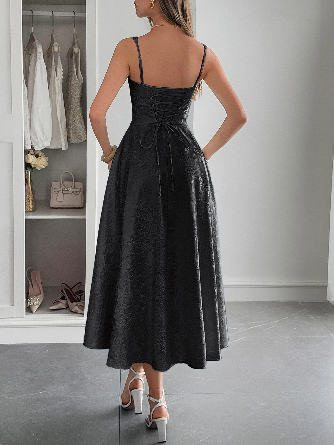 Elegant Graceful Strap Jacquard Maxi Dress Women's Clothing